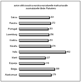 Edullisin vuokra oli Espanjassa 219 euroa eli 1 300 markkaa.