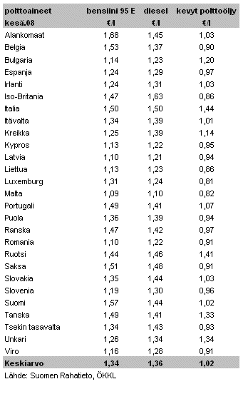 kesäkuussa 2008. Suomessa kevyt polttoöljy maksoi keskimäärin