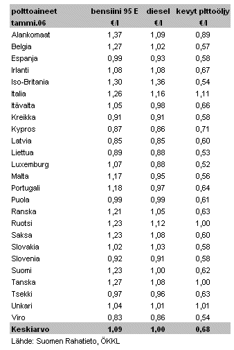 tammikuussa 2006. Suomessa kevyt polttoöljy maksoi keskimäärin