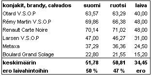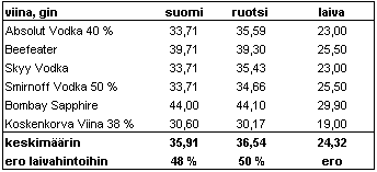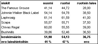 juomissa Ruotsin laivahinnat ovat maahintoja