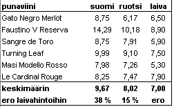 keskikurssilla. Vertailussa vaikuttaa siis aina