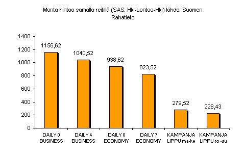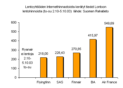 Seuraavassa on kerätty eri lentoyhtiöiden Internet-sivuilta lentohinnat 2.10.-5.10.2003
