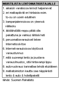 Mukana on myös lentomatkustajalle laadittu muistilista.