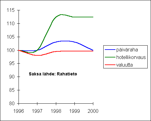 palkansaajan kohdalla päivärahan ostovoimassa vuonna 2000 ei