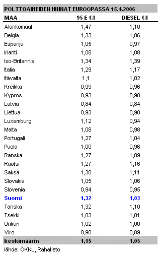euroa litralta huhtikuussa 2006. 100 eurolla tankkasi