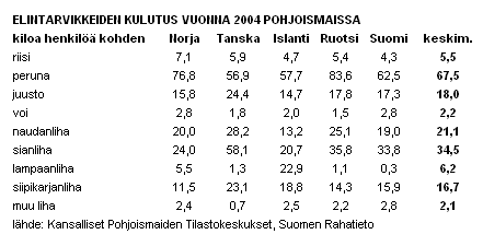 kuinka paljon henkeä kohden Pohjoismaissa syödään eri