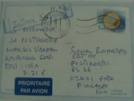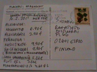 5 postikorttia ja - merkkiä maksoi vanhassa kaupungissa Eesti Post:ssa 7,21 €.