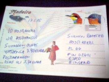 10 postikorttia ja postimaksut Suomeen olivat yhteensä 7.90 euroa.