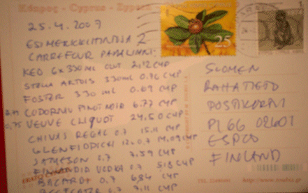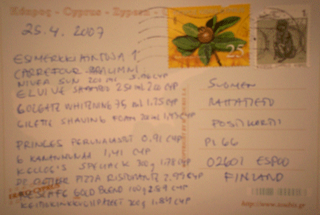 0,26 cyp ja postikortti 0,25 - 0,30 cyp (1 cyp on noin 1,8 €).