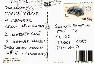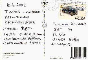 Sitgesistä Barcelonaan moottoritietä ajettaessa joutuu maksamaan 4,07 euron tiemaksun.(12.6.2002)