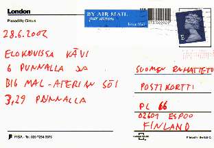 Elokuvissa kävi 6 punnalla ja Big Mac -aterian söi 3,29 punnalla. (28.6.2002)