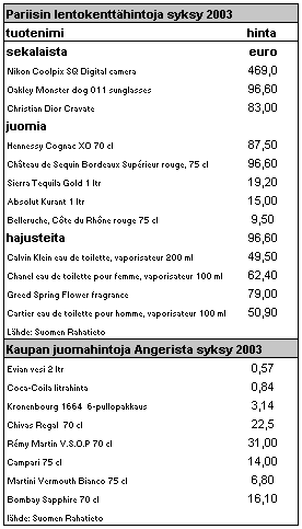 lokakuussa 2003. Hintaesimerkkien avulla matkailijalla