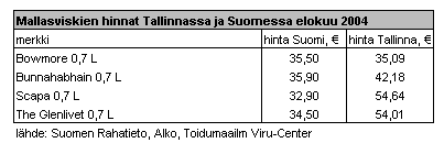 Viru- Centerin myymälästä löytyi viisi mallasviskiä,
