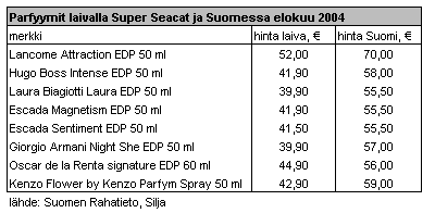 Parfyymeissä on selviä hintaeroa Suomen maahintoihin.