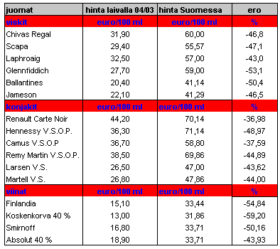 ero laivahintojen ja Suomen